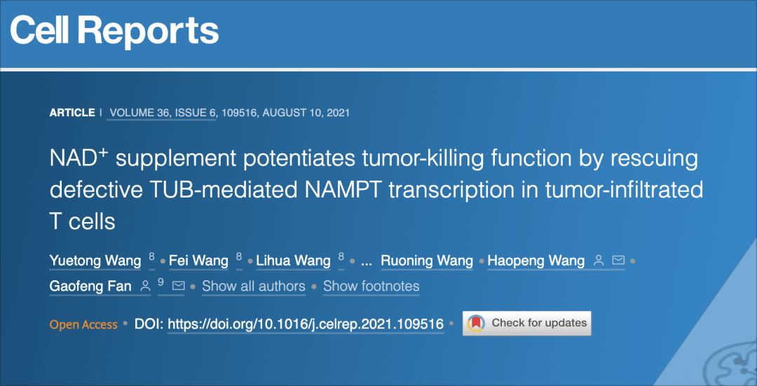且后续的《Cell》子刊里,也有相关的论文,表述了如果补充NAD+,那么是可以助力免疫疗法的。