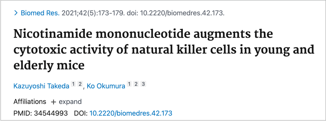 [1] Cheng-Feng Qin, Zhiheng Xu, et al. Treatment of SARS-CoV-2-induced pneumonia with NAD + and NMN in two mouse models. Cell Discov. 2022 Apr 29;8(1):38.[2] Wei Chen, Qinong Ye, Cheng Cao, Long Cheng, et al. DNA damage contributes to age-associated differences in SARS-CoV-2 infection. Aging Cell. 2022 Oct 18;e13729.[3] Yong-HaoGui, Jian-YuanZhao, et al. Nicotinamide Mononucleotide Alleviates Cardiomyopathy Phenotypes Caused by Short-Chain Enoyl-Coa Hydratase 1 Deficiency. JACC Basic Transl Sci. 2022 Apr; 7(4): 348–362.[4] Zhenyu Ju, Yong Zhou, et al. Association between NAD+ levels and anaemia among women in community-based study. doi.org/10.1111/jcmm.17281[5] Xiaokai Zhang, Yang Zhang, Aijun Sun, Junbo Ge. The effects of nicotinamide adenine dinucleotide in cardiovascular diseases: Molecular mechanisms, roles and therapeutic potential. Genes Diseases. 2022 Jul; 9(4): 959–972.[6] Chao-Yu Miao, et al. Distribution of Nicotinamide Mononucleotide after Intravenous Injection in Normal and Ischemic Stroke Mice. DOI: 10.2174/1389201023666220518113219[7] Xiao-Ru Ma, Xudong Zhu, Yujie Xiao, et al. Restoring nuclear entry of Sirtuin 2 in oligodendrocyte progenitor cells promotes remyelination during ageing. Nature Communications volume 13, 1225 (2022).[8] Jiulin Chen, Dingzhu Shen, et al. Aβ promotes CD38 expression in senescent microglia in Alzheimer's disease. Biological Research. 2022 Mar 3;55(1):10.[9] Xiaohong Lian, Tao Li, et al. NAD + salvage governs mitochondrial metabolism invigorating NK cell anti-tumor immunity. Hepatology. 2022 Jul 11. doi: 10.1002/hep.32658.[10] Dakeun Lee, You-Sun Kima, et al. NAMPT mitigates colitis severity by supporting redox-sensitive activation of phagocytosis in inflammatory macrophages. Redox Biology. 2022 Apr; 50: 102237.[11] Xin Wu, et al. Nicotinamide mononucleotide supplementation protects the intestinal function in aging mice and d-galactose induced senescent cells. Food & Function, 13(14), 7507-7519.[12] Jia-Feng Wang, et al. Nicotinamide Mononucleotide Attenuates LPS-Induced Acute Lung Injury With Anti-Inflammatory, Anti-Oxidative and Anti-Apoptotic Effects. doi.org/10.1016/j.jss.2022.09.030[13] Xiaoling Zhang, Ziyi Li, Xiangpeng Dai, et al. Administration of nicotinamide mononucleotide improves oocyte quality of obese mice. doi.org/10.1111/cpr.13303